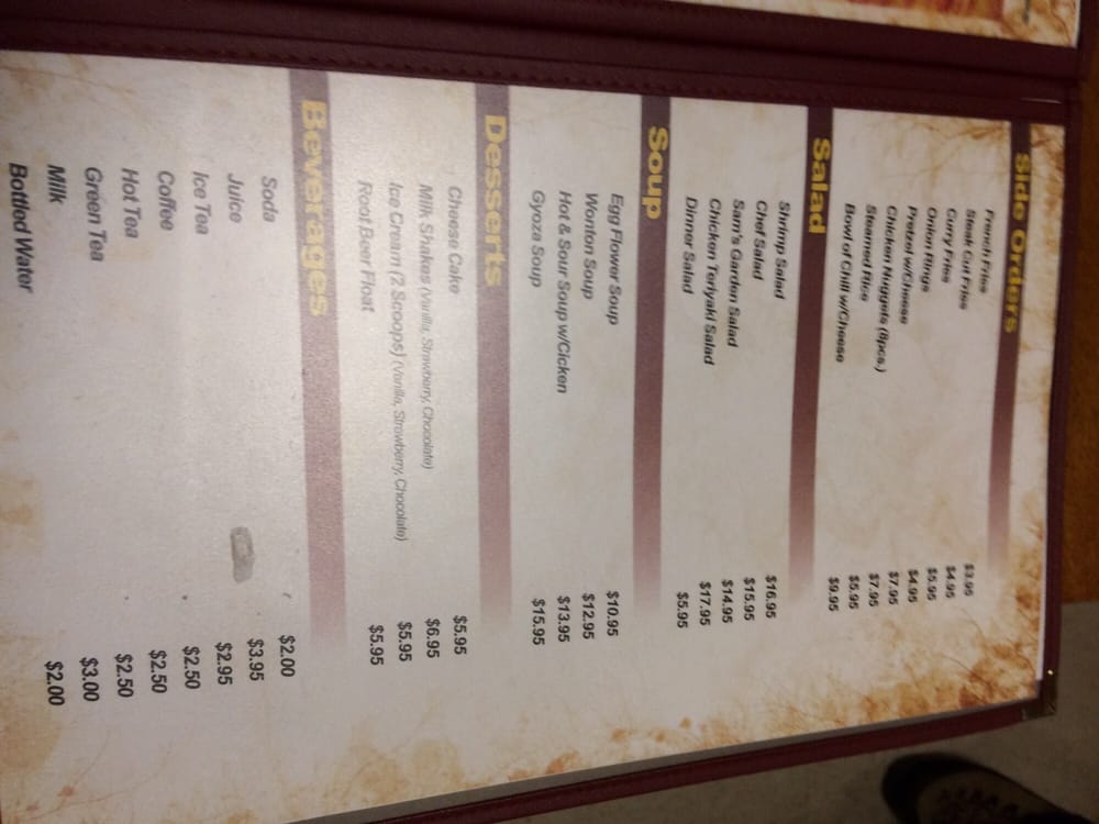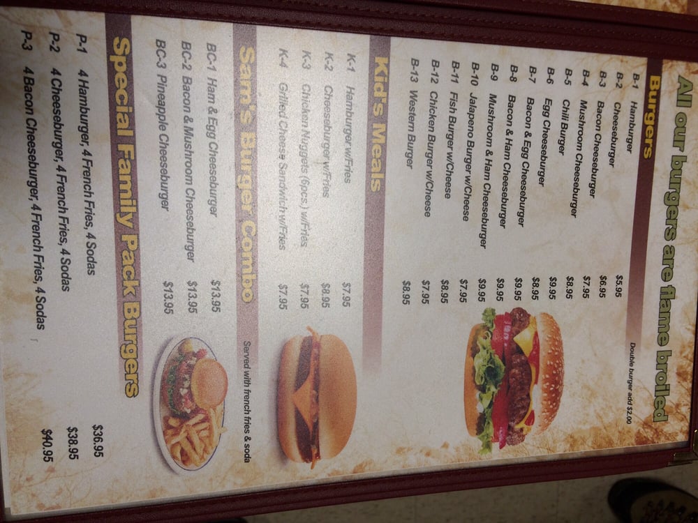 Sam's Restaurant Menu
